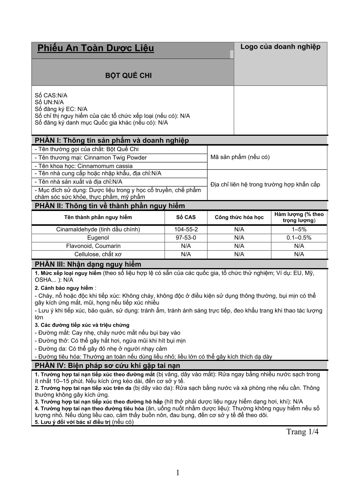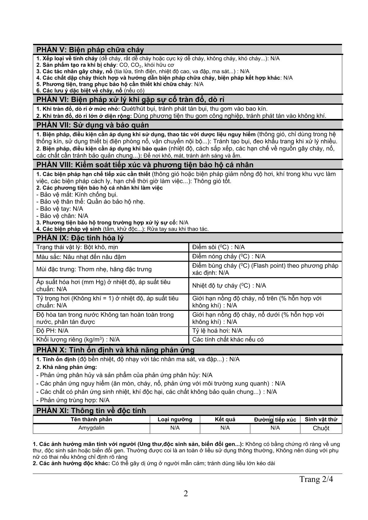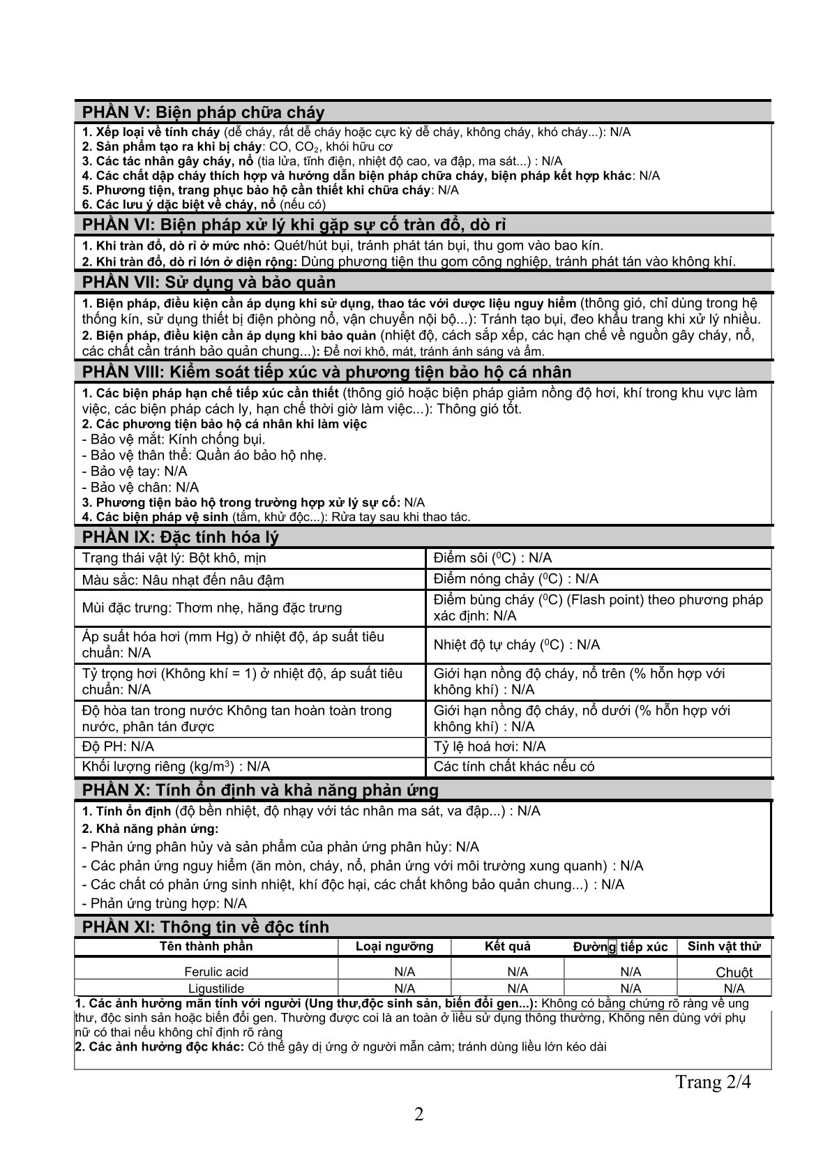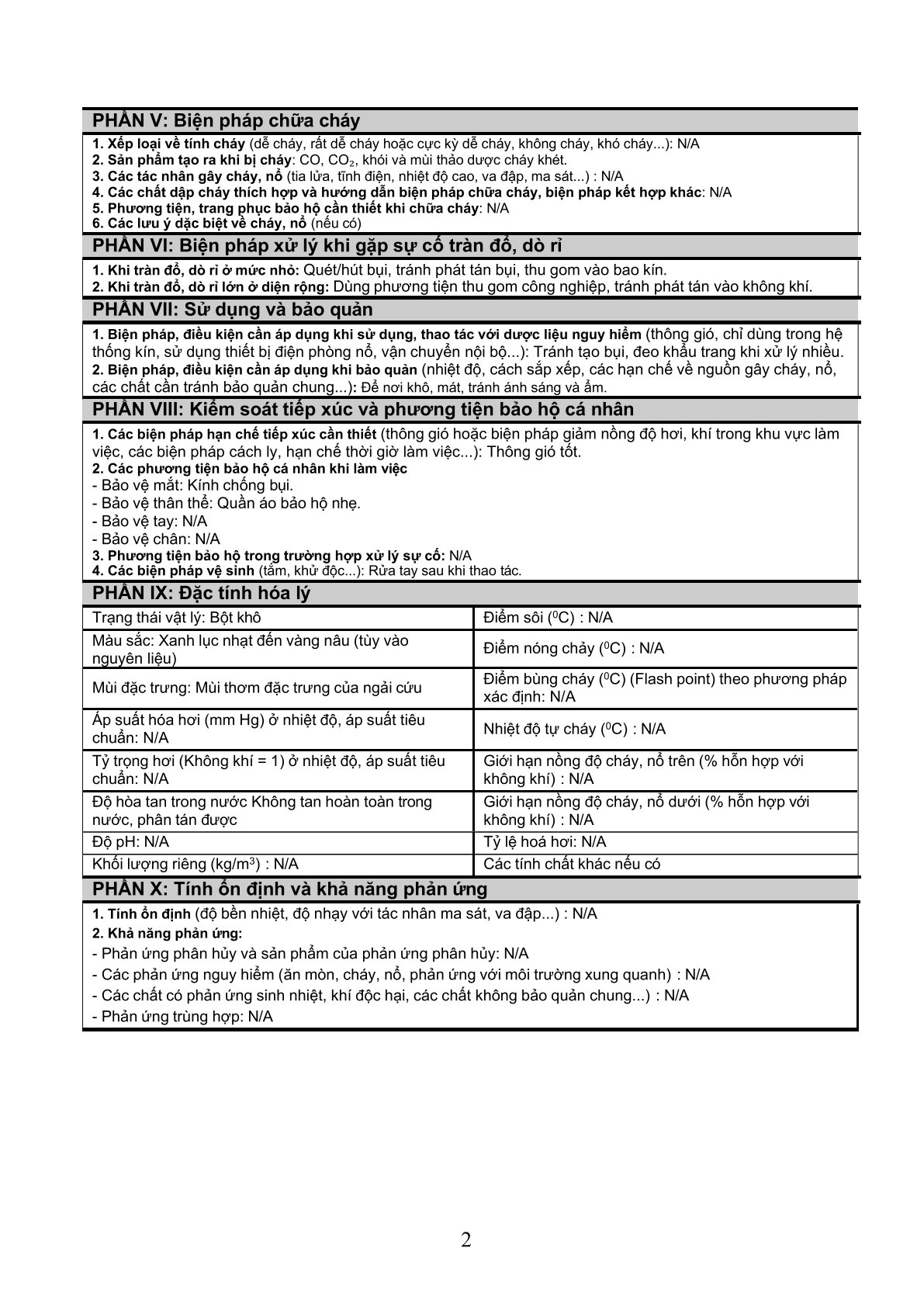 Nguy cơ cháy, nổ hoặc độc hại: Các thành phần này không dễ cháy, nổ hoặc độc hại trong điều kiện sử dụng thông thường.