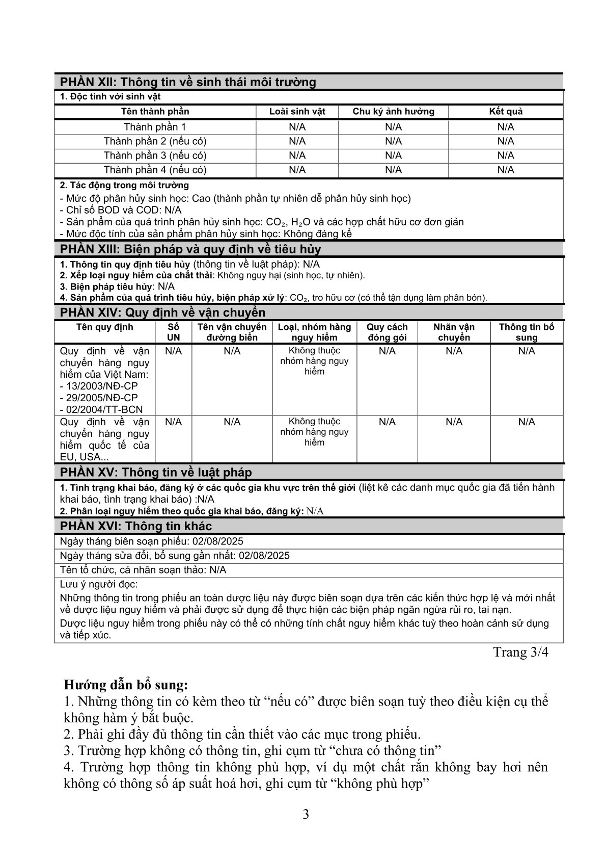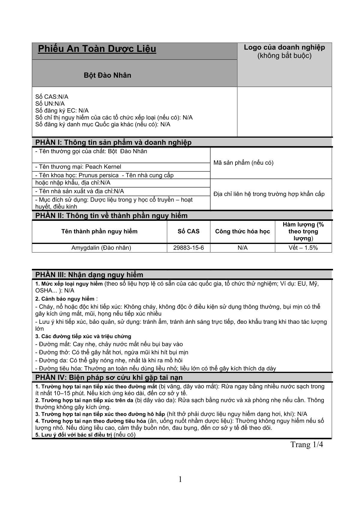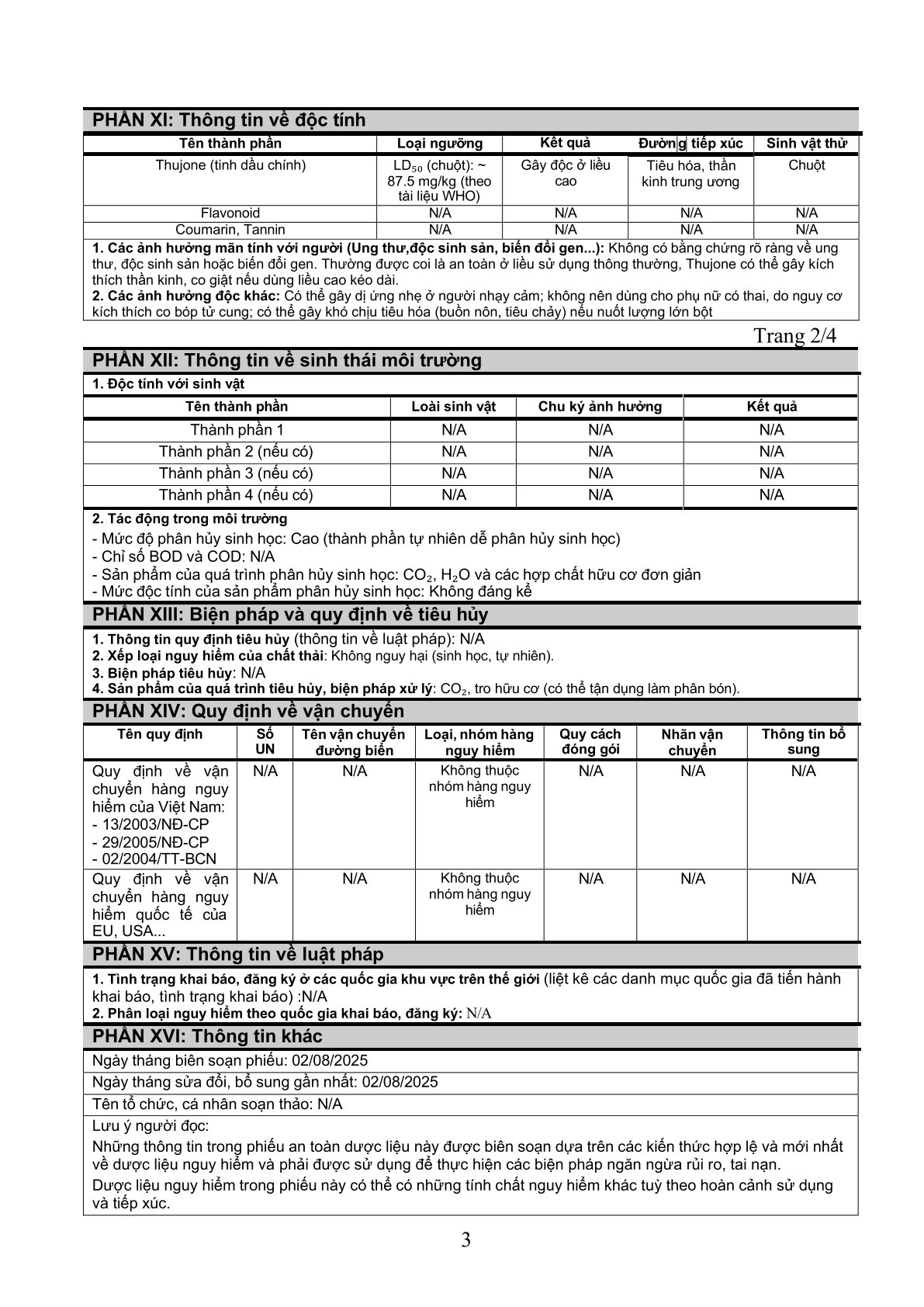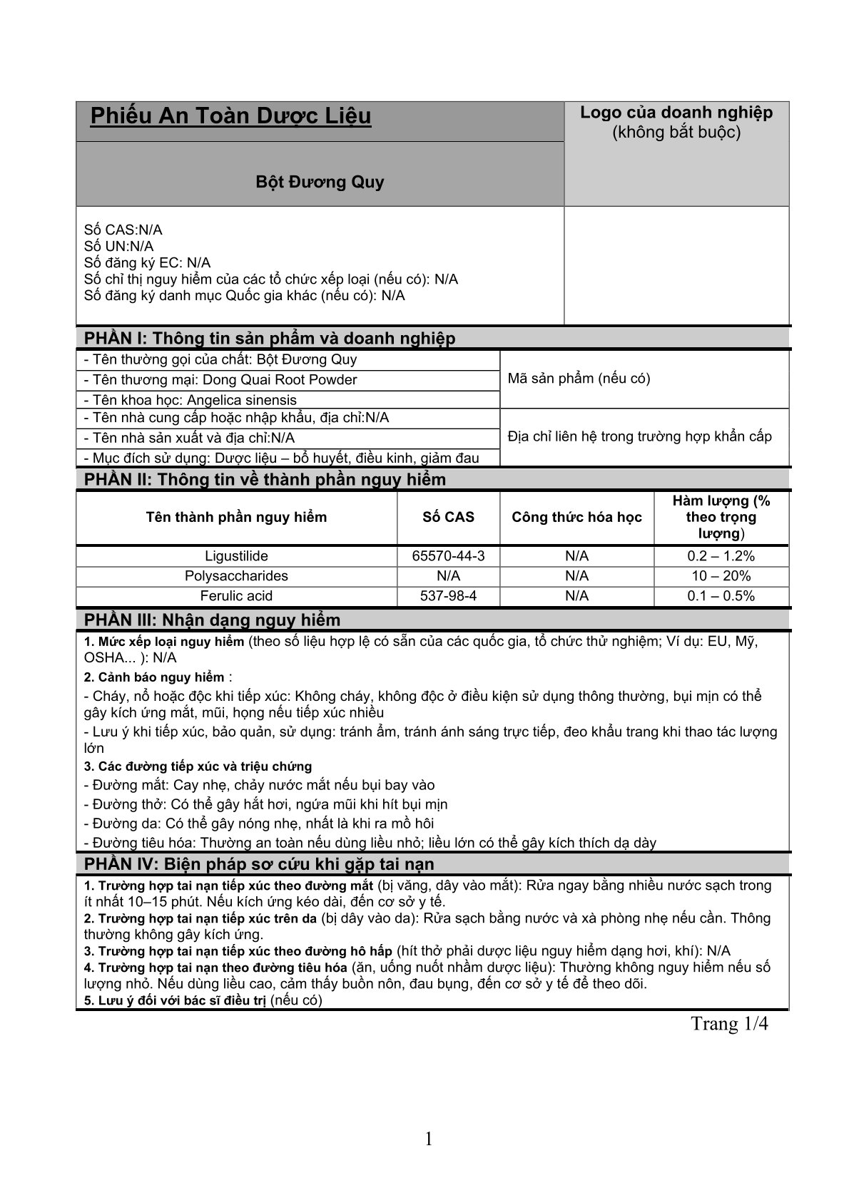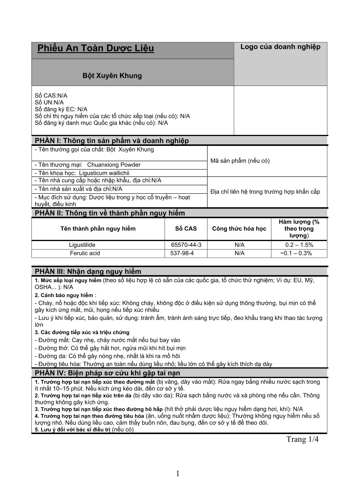 Nguy cơ cháy, nổ hoặc độc hại: Các thành phần này không dễ cháy, nổ hoặc độc hại trong điều kiện sử dụng thông thường.